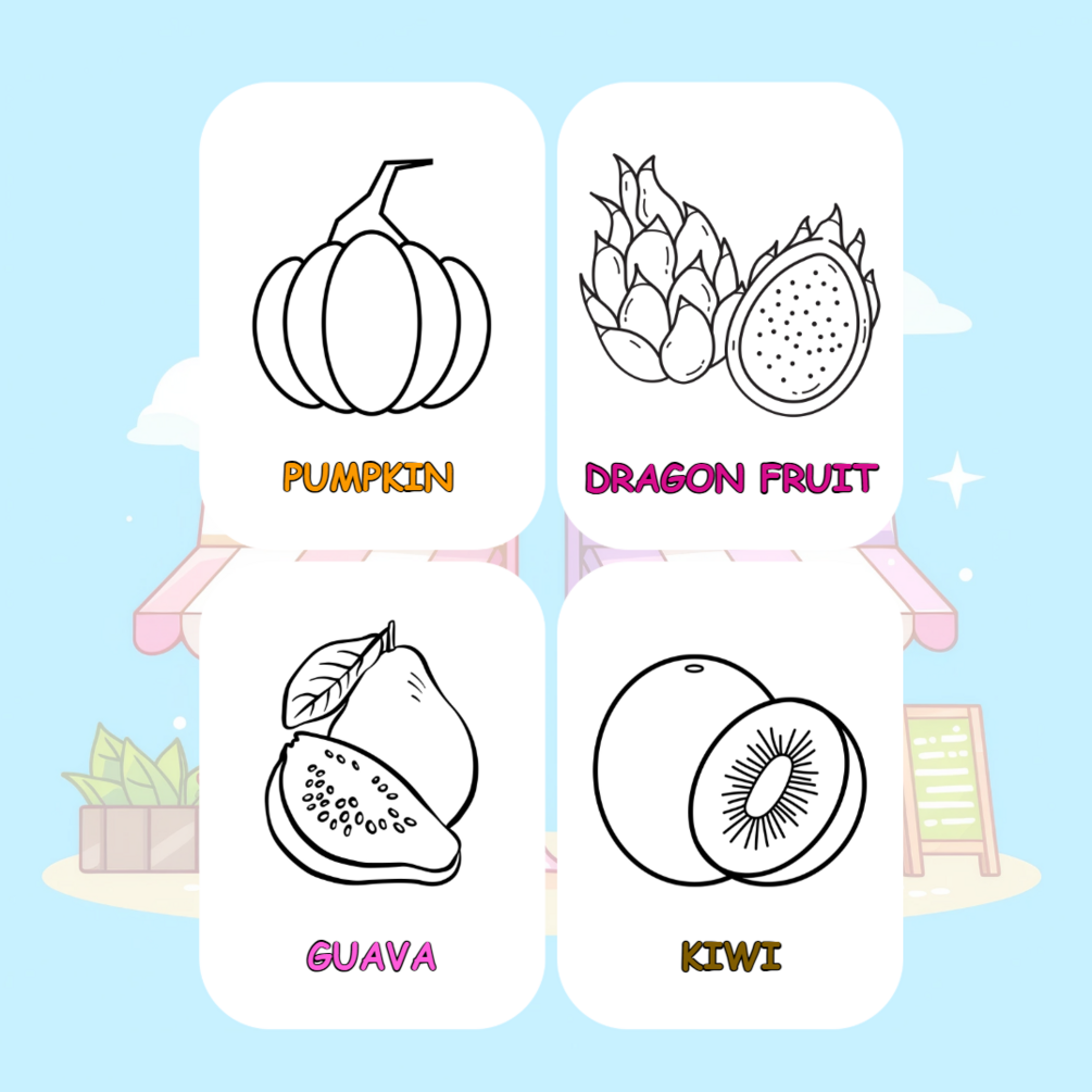 You'll get PDF of Fruits Coloring Book
